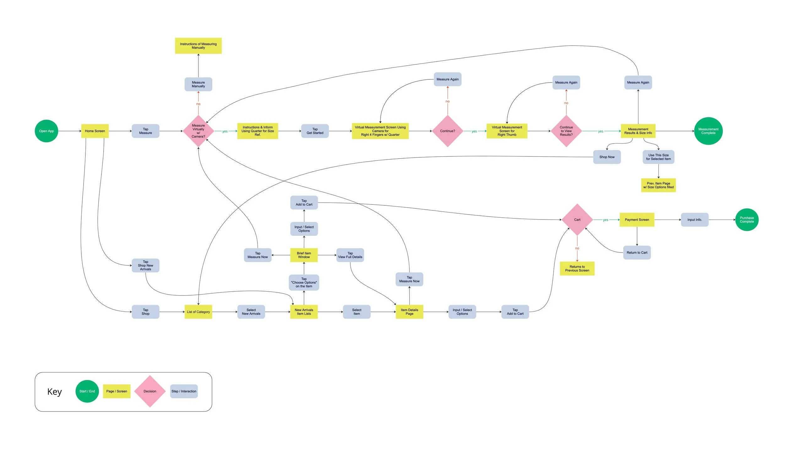After conducting usability testing and interviews, it was found that the measurement process should be simplified for users to understand. The buttons should have clear instructions to help users navigate to the next step, while unnecessary buttons should be removed.