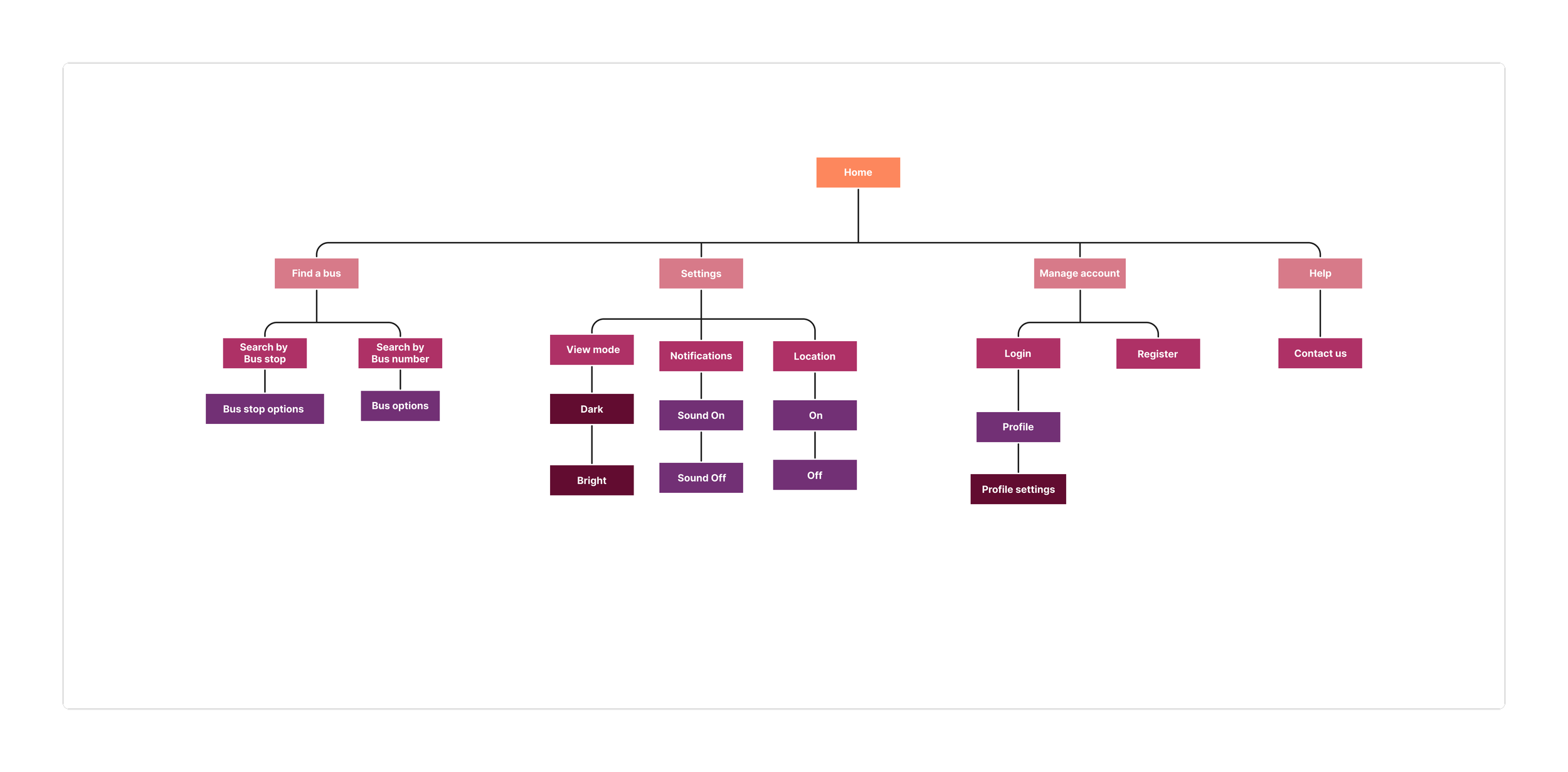 After comprehending the user flows, I made a site map to arrange them in a hierarchical structure. This enabled me to grasp the app's content better and directed the creation of the wireframes, considering how the user would engage with the app.