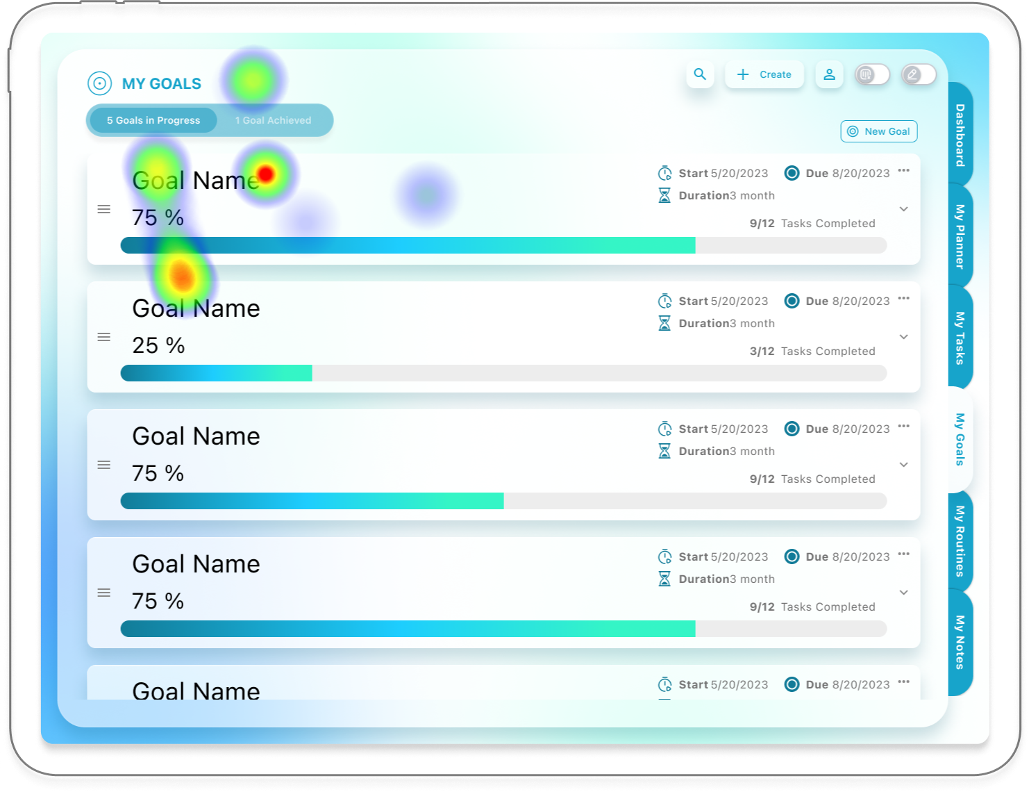 “As an organized student, I want the ability to visually track my progress toward my goals and projects, so I can see how far I came and what's left to do.”