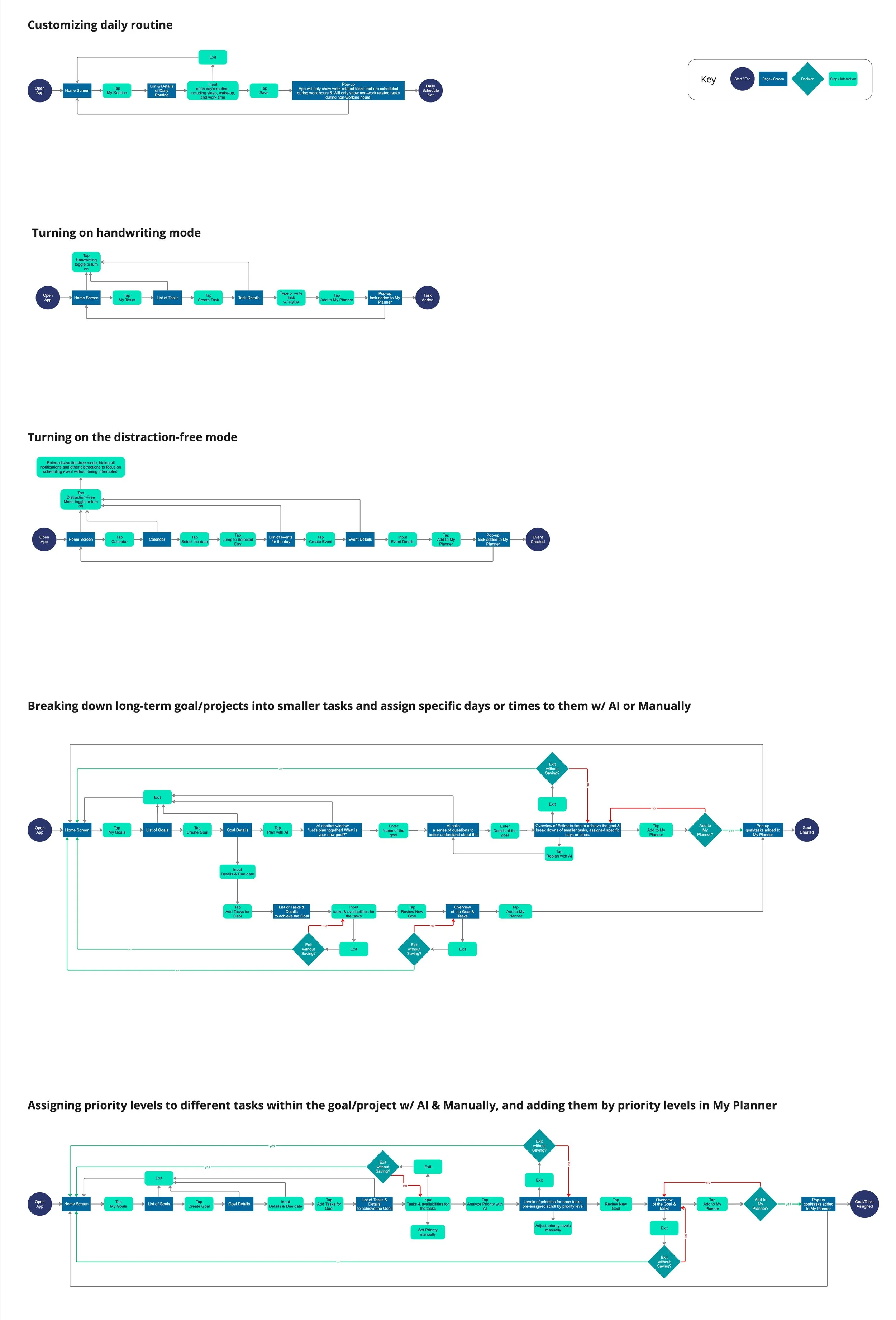 I crafted five user flows to ensure smooth navigation for users in completing high-priority tasks identified in my user stories. This gave me a thorough understanding of the overarching visual hierarchy and the harmonious interconnectedness of the various elements in the design.