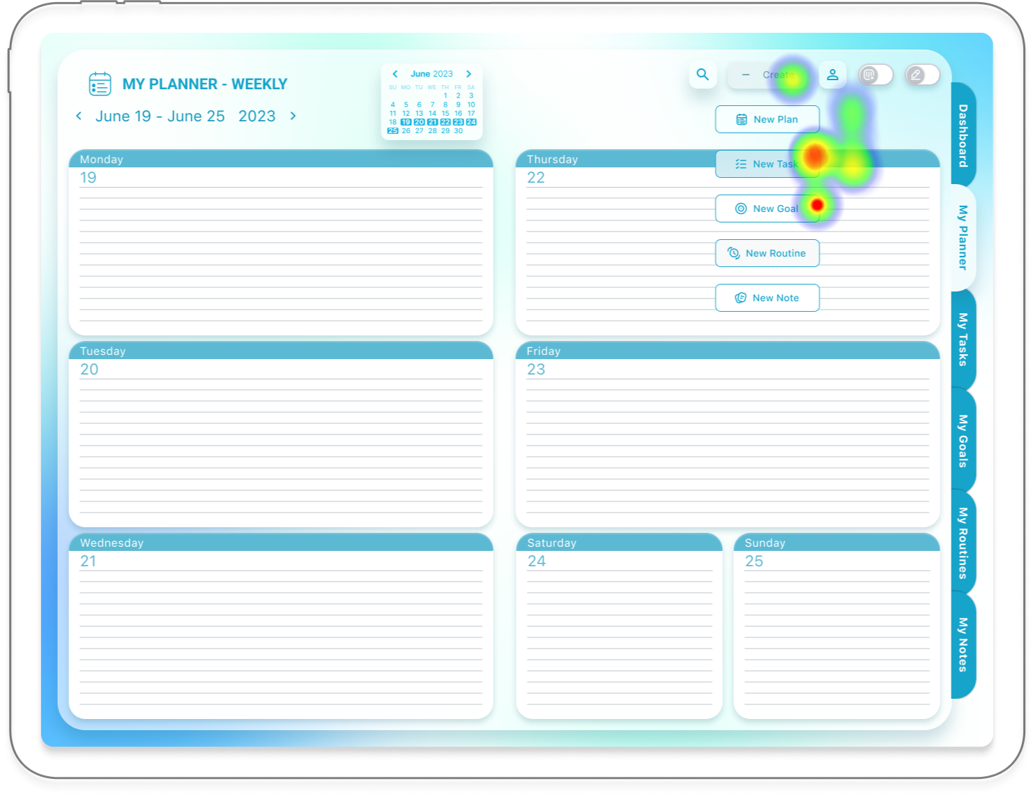 During the design phase of developing a planner app, I made several sketches of different screens. I used the research I had collected as a reference. My main priority was to stay focused on the project's main objectives.